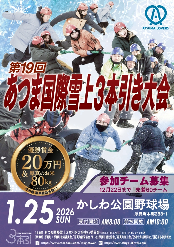 #あつま国際雪上三本引き大会 #三本引き #3本引き #雪上スポーツ #ウィンタースポーツ #北海道イベント #厚真町 #あつま #厚真イベント #北海道観光 #北海道旅行 #冬の北海道 #雪のある生活 #地域イベント #観戦無料 #スポーツイベント #熱い戦い #チームスポーツ #あつま新鮮組 #苫小牧ケーブルテレビ #プレゼント企画 #インスタプレゼント